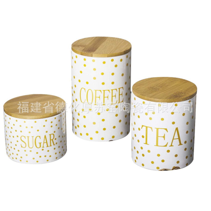 波点セット三陶磁器厨房貯蔵タンク輸出対外貿易大中小セット三茶糖コーヒー密封貯蔵タンク
