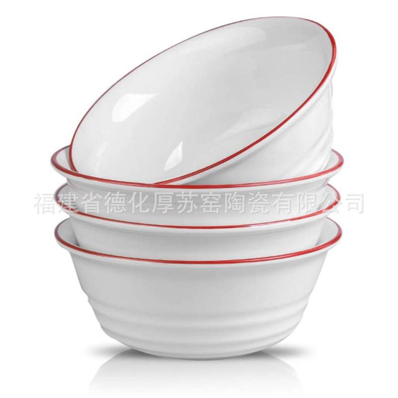 大容量朝食シリアルボウル輸出客ロゴ赤辺磁器質朝食シリアルボウル家庭スープボウル対外貿易