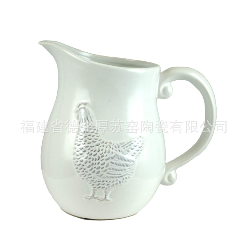 レリーフ雄鶏陶磁器冷水筒輸出田園風レリーフ雄鶏クリームポットコーヒーポット輸出対外貿易