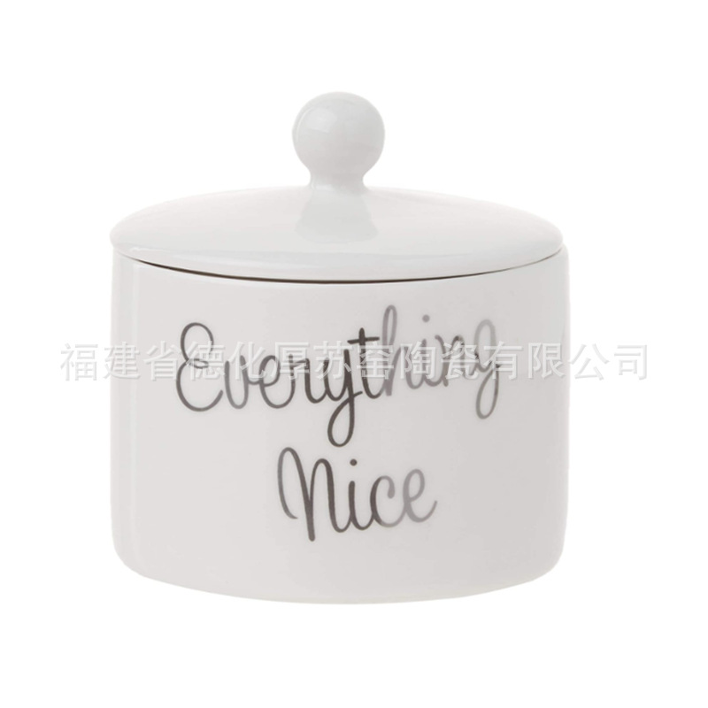 アマゾン人気磁器砂糖缶輸出クロスボーダー人気高品質シルバー印刷セラミック砂糖缶コーヒー