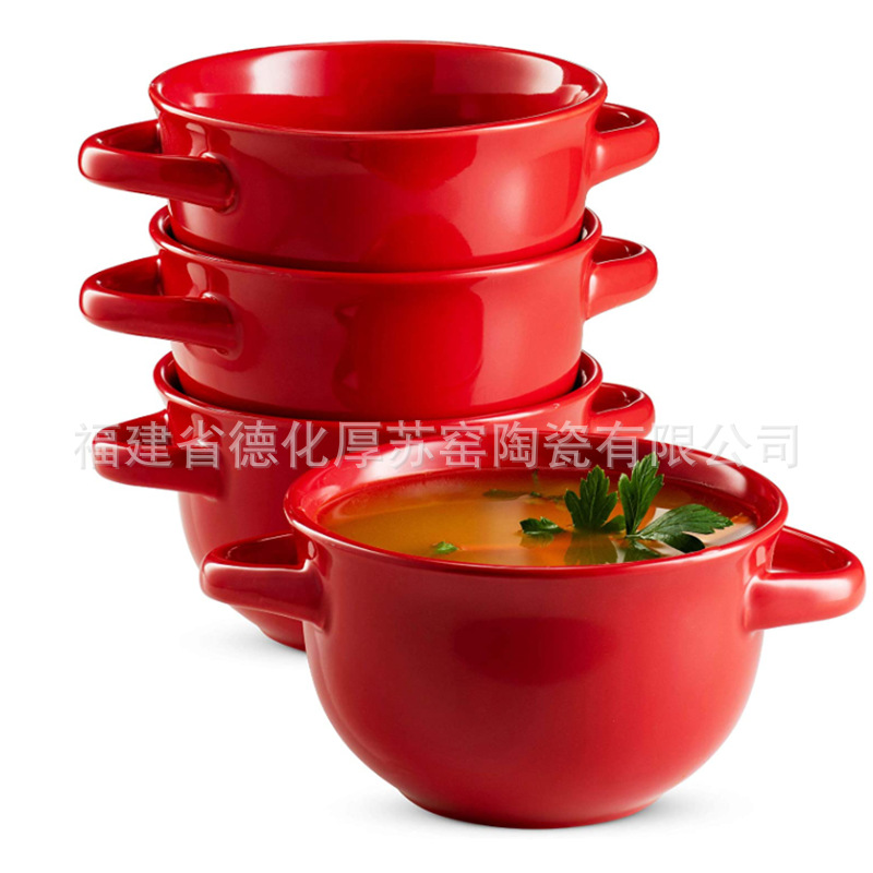 よく売れている陶磁器のスープの碗は対外貿易の双耳の陶磁器のスープの碗を輸出します。
