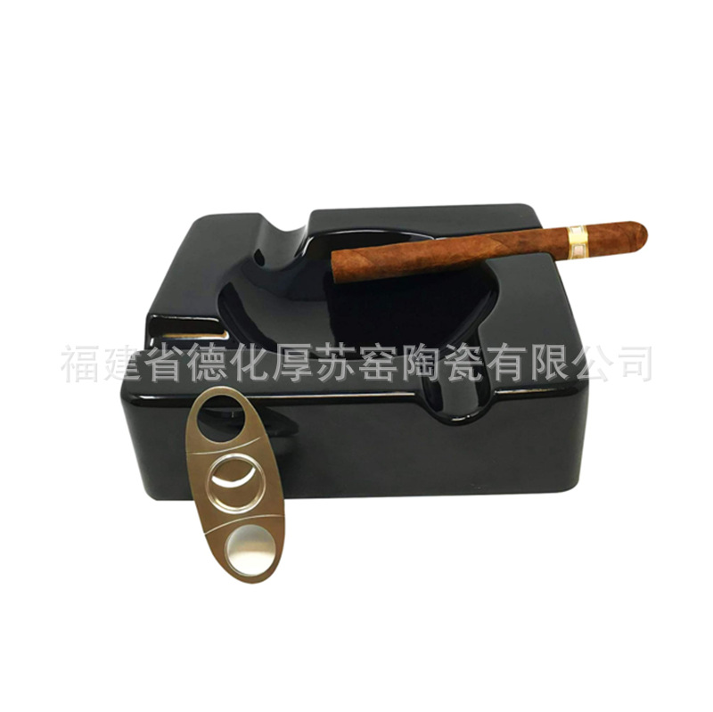 角型陶磁器シガー灰皿輸出対外貿易クラシック角型黒色陶磁器シガー灰皿