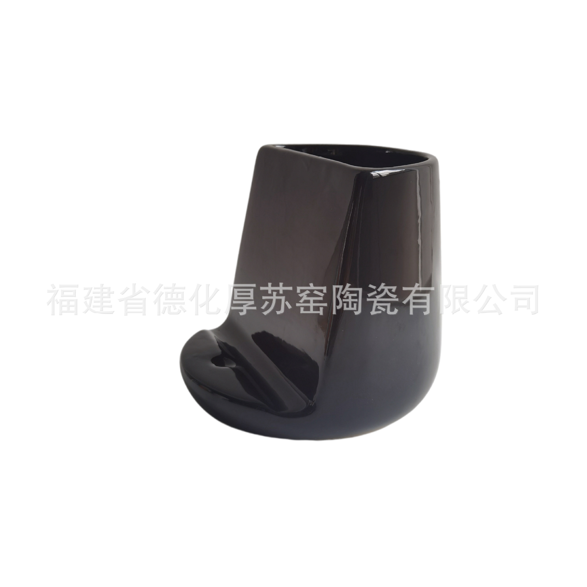 ダブルハンドル黒陶磁器巫婆湯杯輸出黒巫婆両耳湯杯