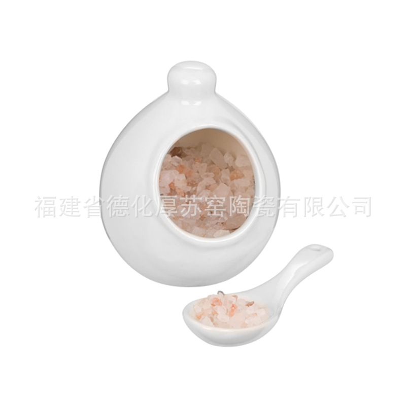 クリエイティブな白いセラミック塩缶輸出custom logo白いセラミック塩缶塩豚の人気スプーン