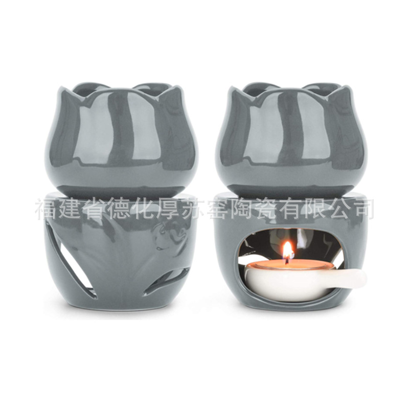 アマゾンの人気陶磁器アロマセラピー炉の輸出磁器質灰色花弁形陶磁器精油アロマセラピー炉の人気