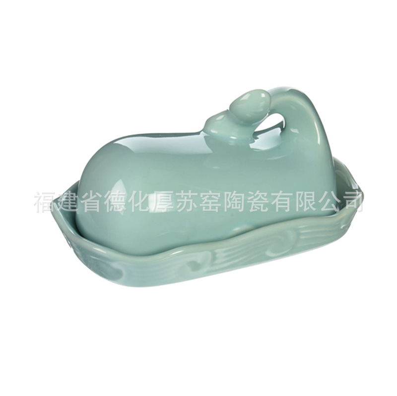 クリエイティブイルカセラミックバタープレート輸出セラミックイルカターバタープレートファッション水色バタープレート