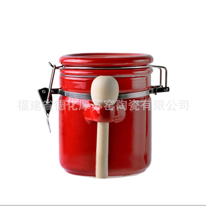 工場鉄フレーム木製スプーンセラミック密封缶外ピン赤い鉄リングセラミック密封缶木製スプーン輸出