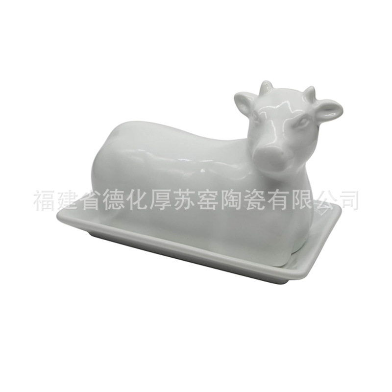 乳牛造形セラミックバター皿外ピン白色牛セラミックバター皿3d牛バター皿
