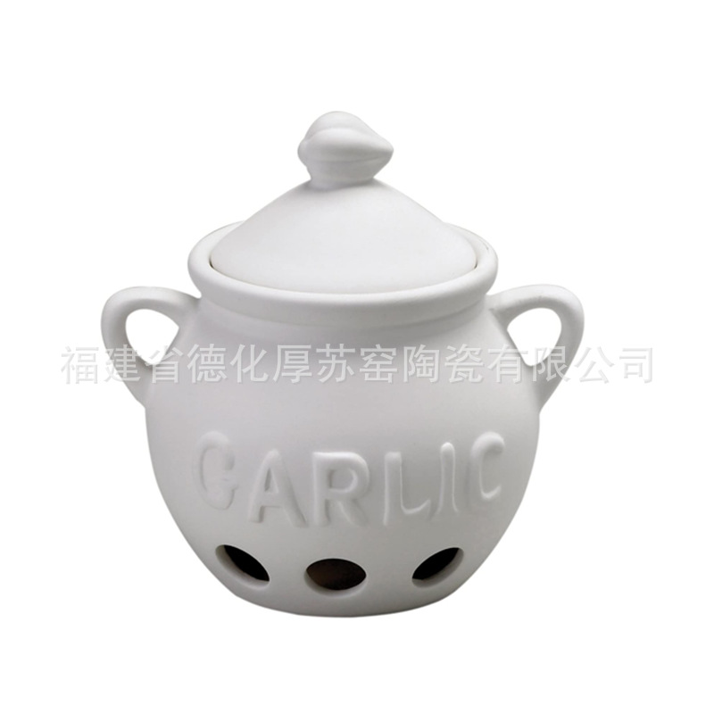 3dエンボスロゴセラミックニンニク缶キッチンセラミックニンニク貯蔵タンクアマゾンセラミックニンニク缶