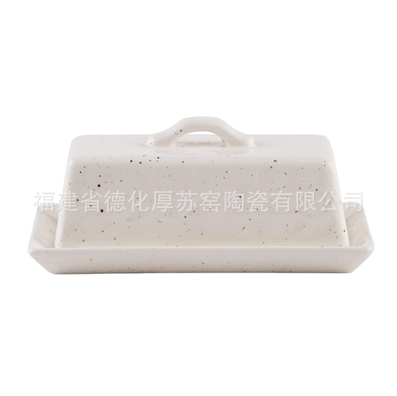 お客様のロゴの長方形の陶磁器のバターの皿は口を出して長方形の陶磁器のバターの皿を噴き出します。