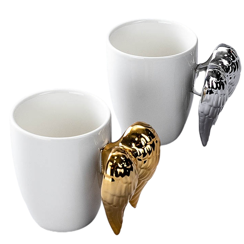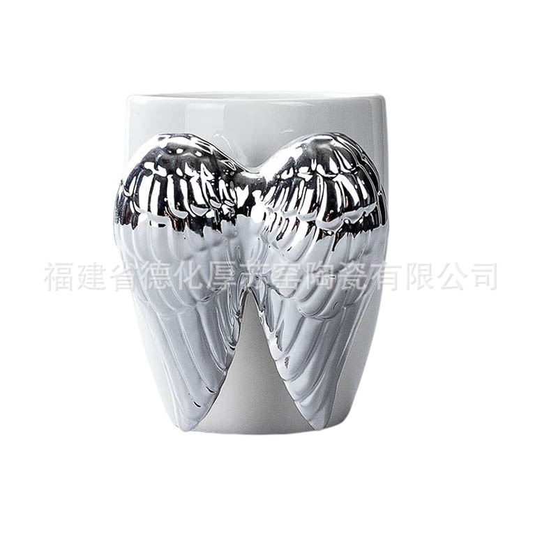 中温セラミックメッキ天使翼ハンドルマグカップ、金色銀色メッキ天使翼マグカップ