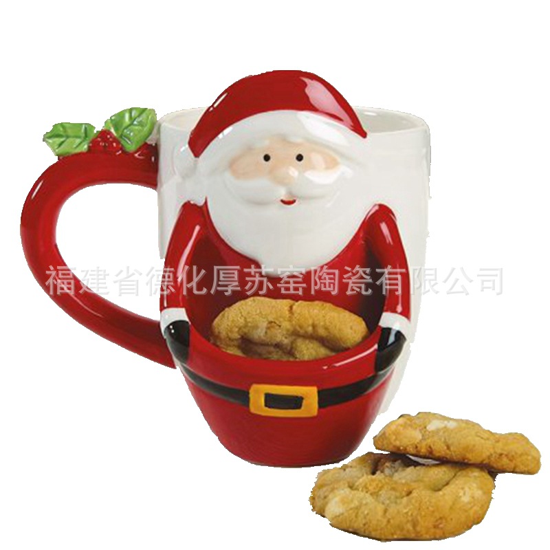 クリエイティブな彩色陶磁器クリスマスの夫クッキーカップ輸出輸出クリスマスクッキーコーヒーカップクリスマスギフトカップ