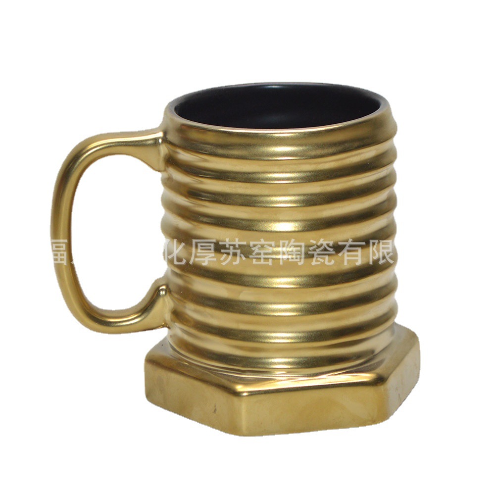 クロスボーダーメッキセラミックスクリューカップ輸出セラミックスクリューコーヒーカップクリエイティブセラミックスクリューカップゴールド