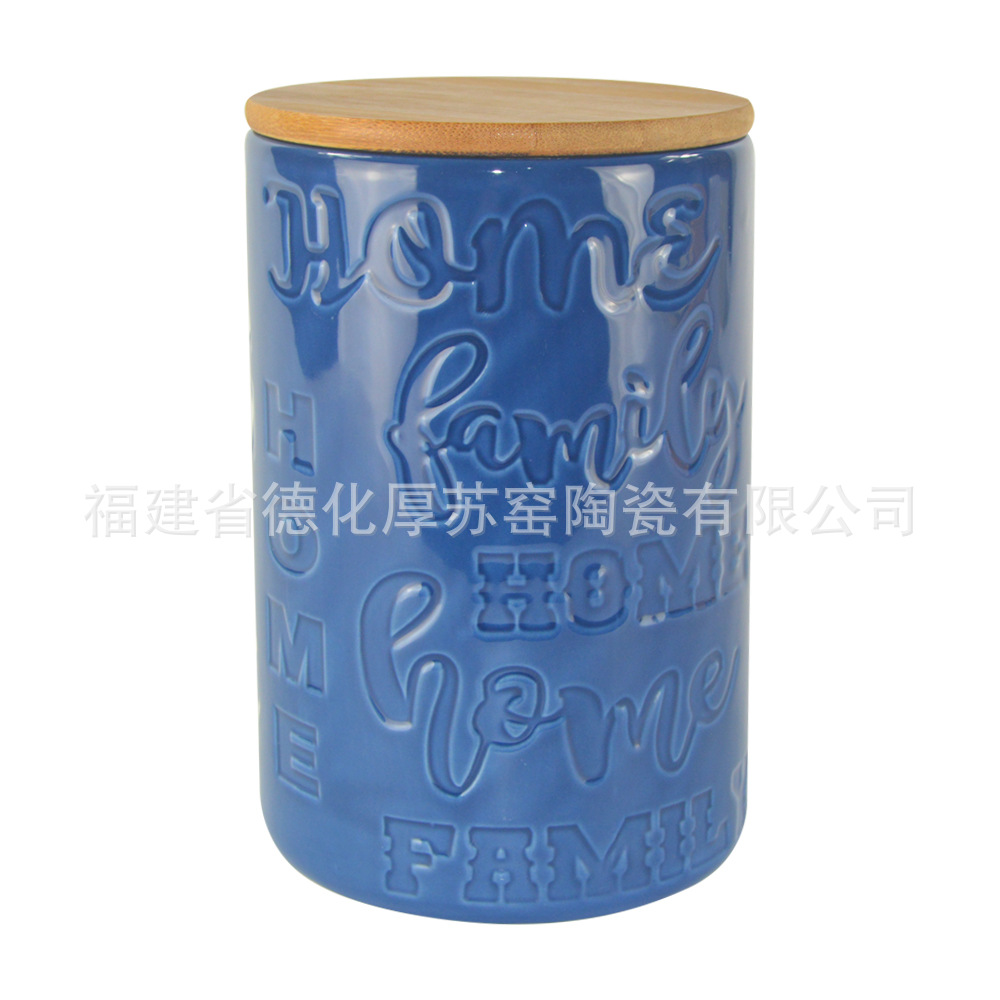 浮き彫りロゴセラミック密封缶紺色浮き彫りセラミックコーヒー缶輸出クロスボーダーセラミック缶