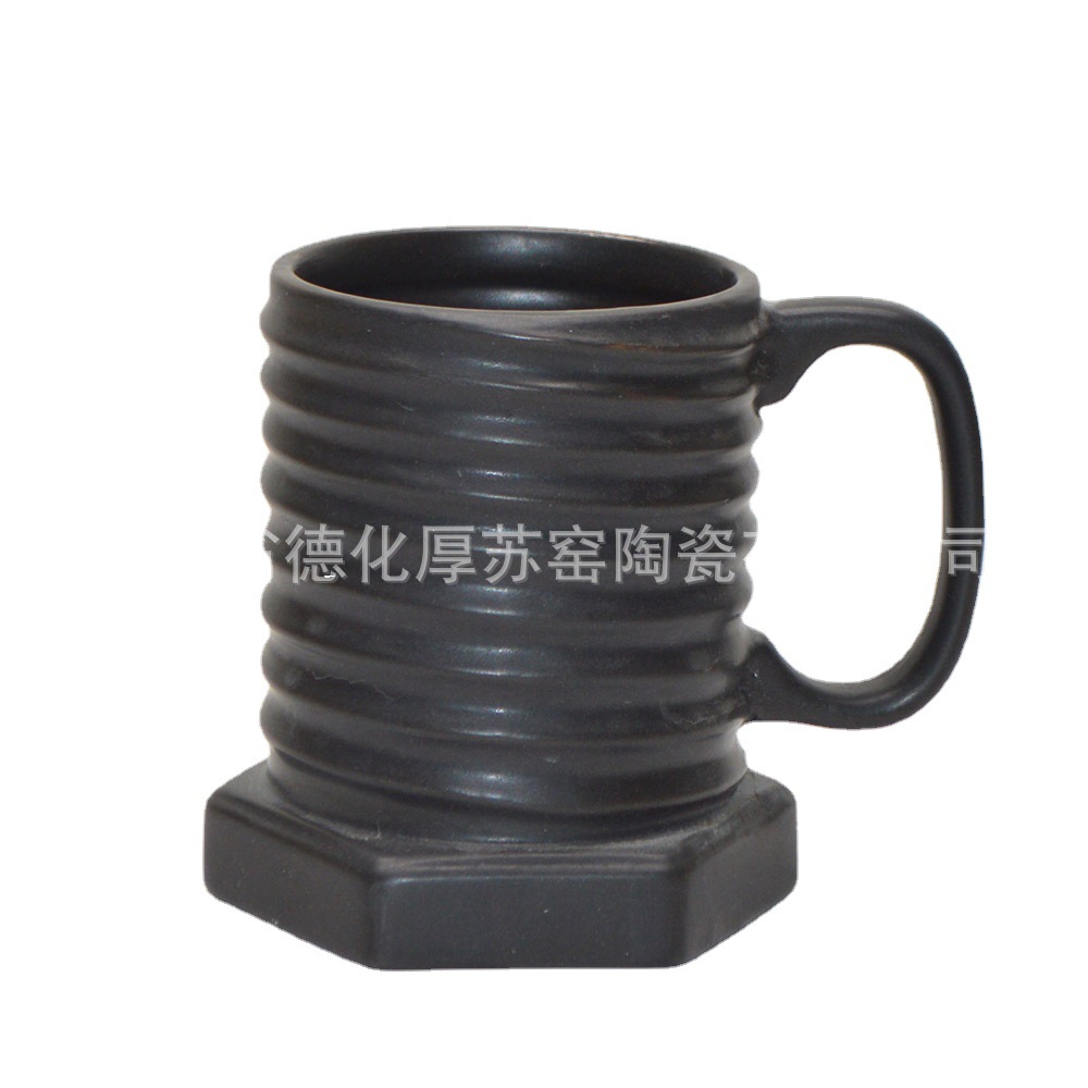 クリエイティブマットブラックセラミックスクリューカップ輸出クリエイティブセラミックスクリューコーヒーカップマットブラック