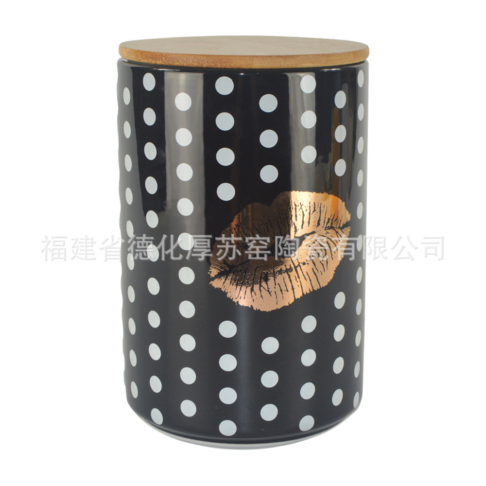 ファッション陶磁器密封缶口紅印刷陶磁器密封コーヒー缶輸出大型陶磁器茶葉缶