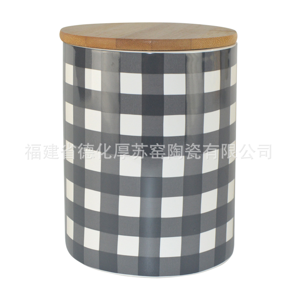 白黒格子印刷セラミック密封缶輸出白黒格子セラミックコーヒー缶格子縞セラミック茶葉缶