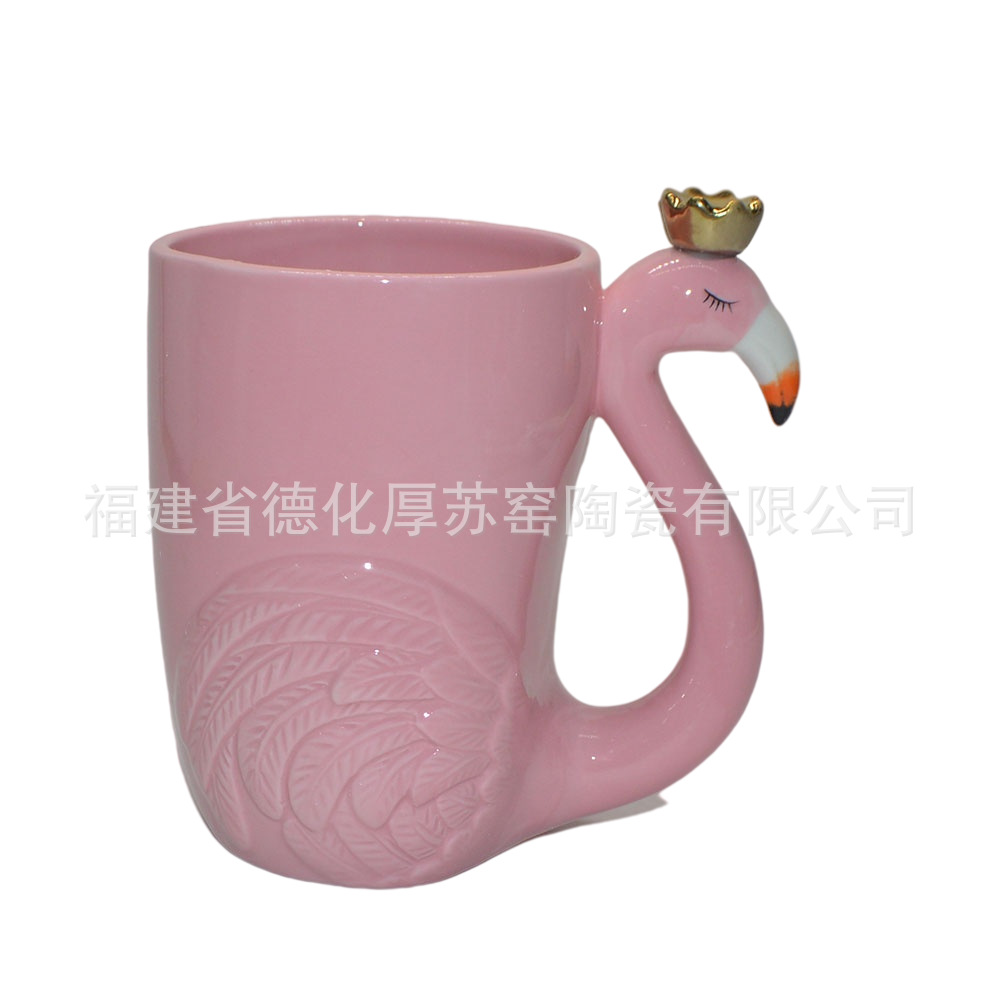 ピンクの陶磁器のフラミンゴの杯は対外貿易の陶磁器のフラミンゴのコーヒーの杯の中温の陶磁器のフラミンゴのコップを輸出します。