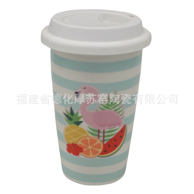 クロスボーダー陶磁器二重旅行カップ輸出陶磁器旅行カップ350ml陶磁器旅行コーヒーカップ輸出