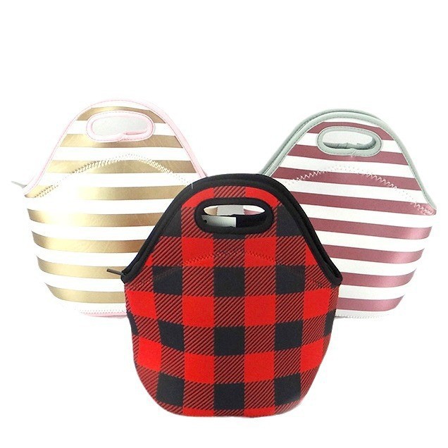 人気潜水料ランチバッグ携帯防水耐摩耗性ピンクストライプ格子シンプルなプリント弁当バッグ保温バッグ