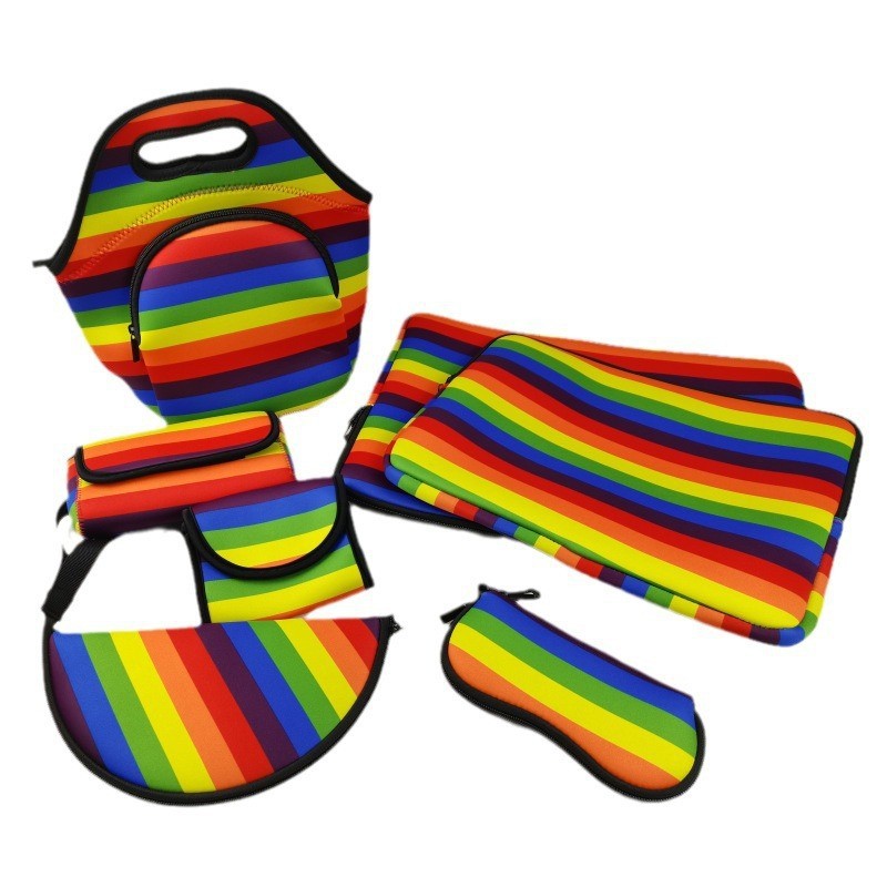 人気潜水料虹プリントランチバッグパソコンバッグメガネバッグマウス収納袋マット二合一可DIY