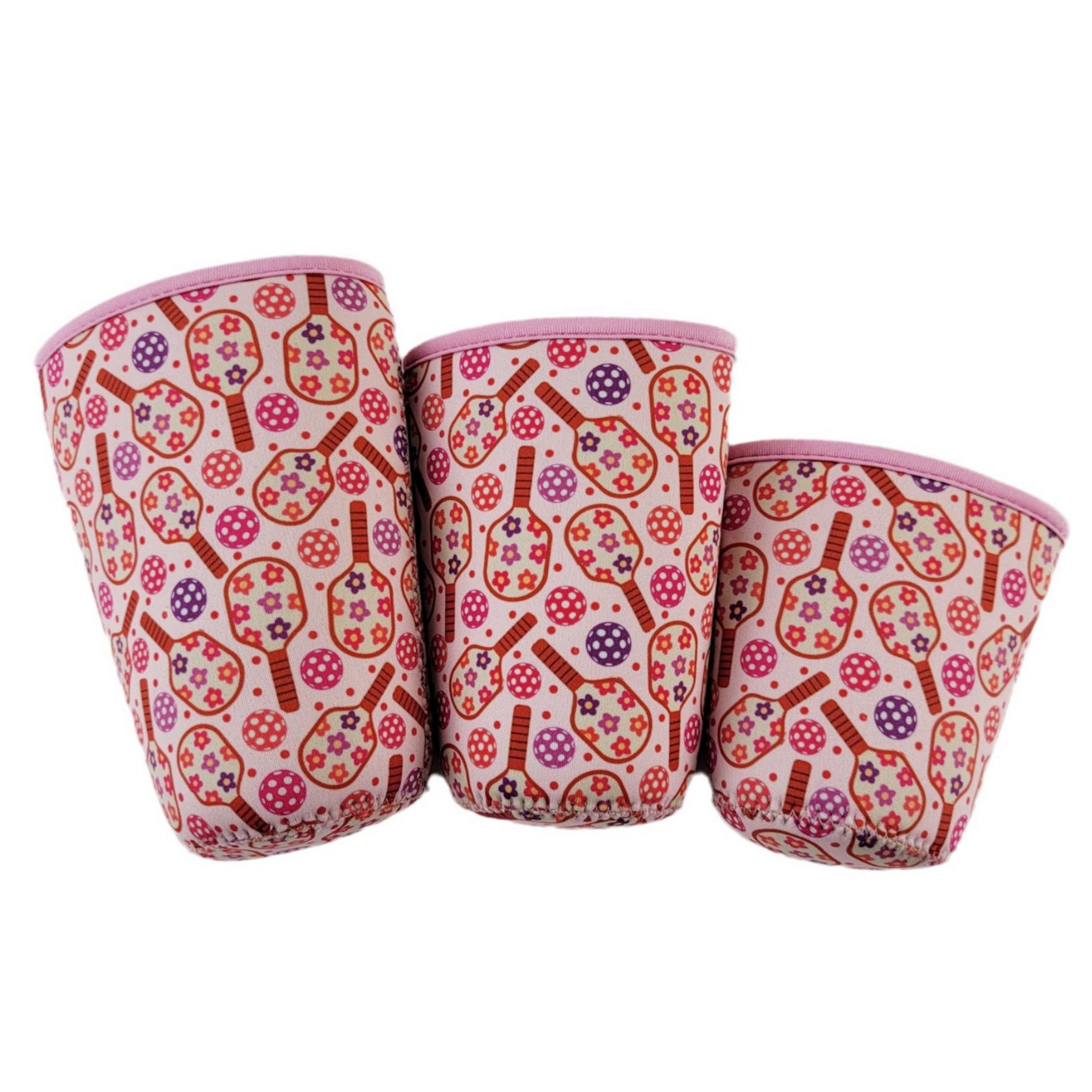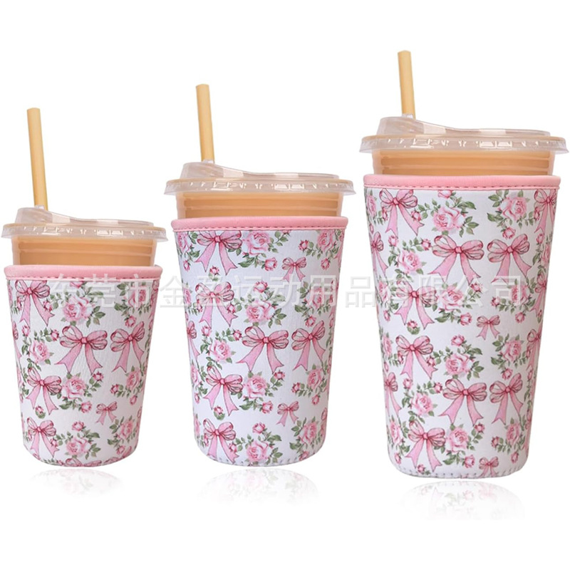 メーカーの人気潜水材料の新型プリントピクセルピンクの格子の蝶結びの小さい花のコーヒーカップのカバー