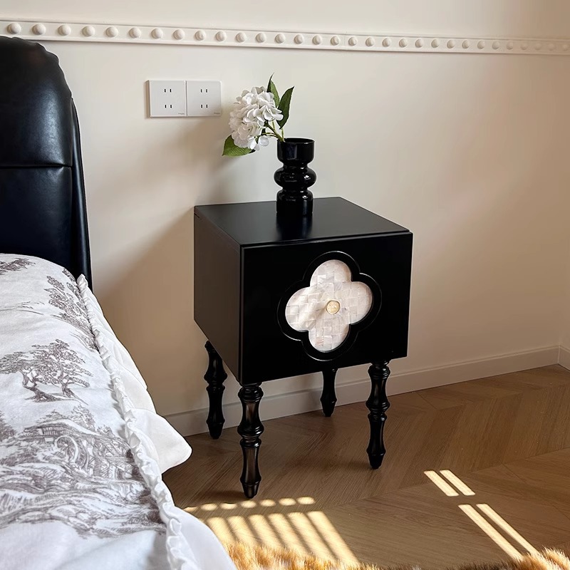 フランスのレトロな木のロッカーの客間の辺のいくつかのクローバーの貝殻のベッドの頭の収納棚の中古式のベッドの頭の箱