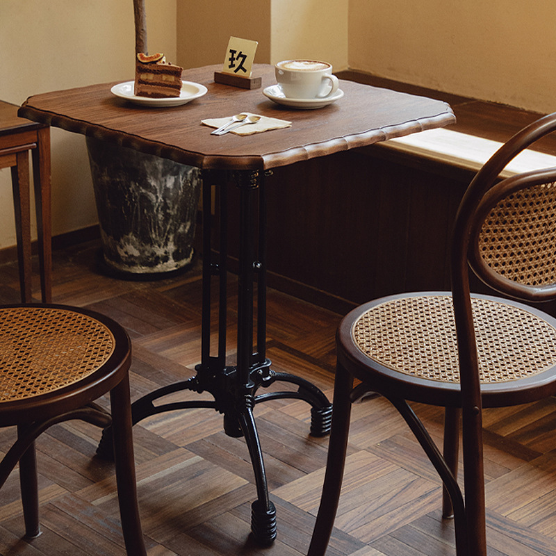 レースの四角いテーブルのレトロな実木の喫茶店のテーブルと椅子のアメリカの鉄芸のフランス式の円卓のレストランの中古の食卓