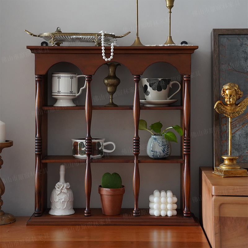 中古カップ棚置物リビング木製カップ展示棚収納フレンチレトロ壁掛け飾り仕切り丸アーチ