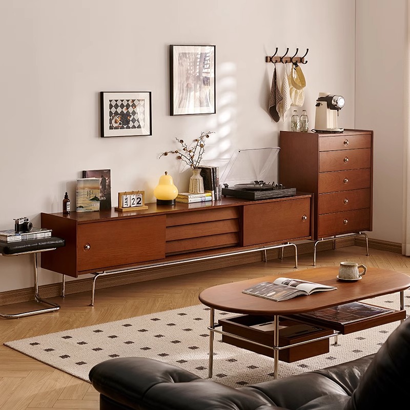 レトロ無垢材テレビキャビネット小さなアパート中世スタイル家具テレビキャビネット北欧リビングルーム家具壁キャビネット組み合わせ白
