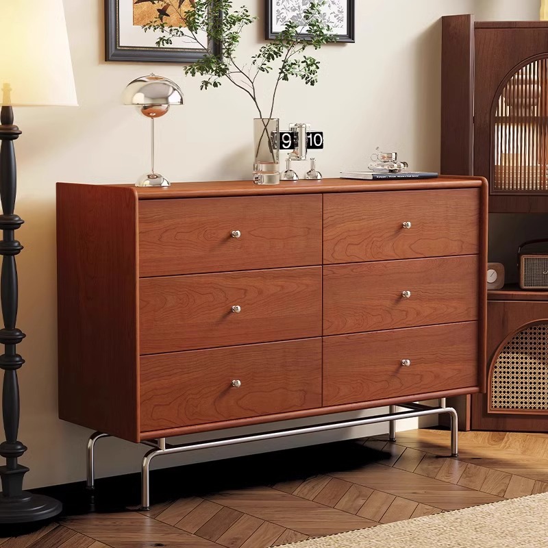 北欧無垢材レトロ6引き出しキャビネット寝室ベッドサイド収納ロッカーリビングルーム中古収納キャビネット壁サイドボード