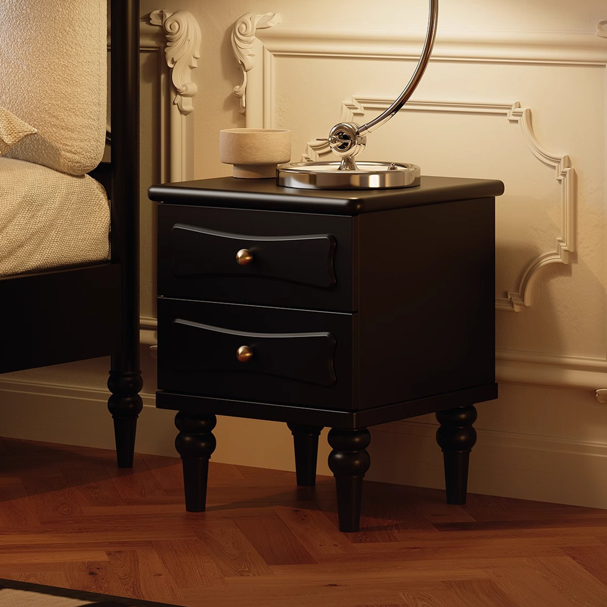 2025 新フレンチレトロ寝室無垢材ベッドサイドテーブルアメリカンシンプルホーム小型収納キャビネット黒収納キャビネット
