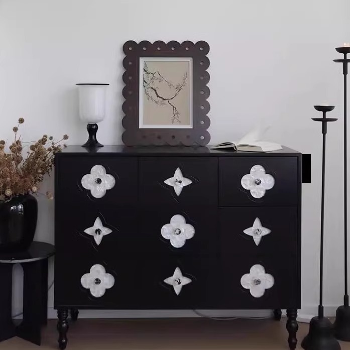 フレンチレトロサイドボードシェル四つ葉のクローバー9引き出しキャビネットホームリビングルーム収納キャビネット無垢材デザイナーポーチキャビネット