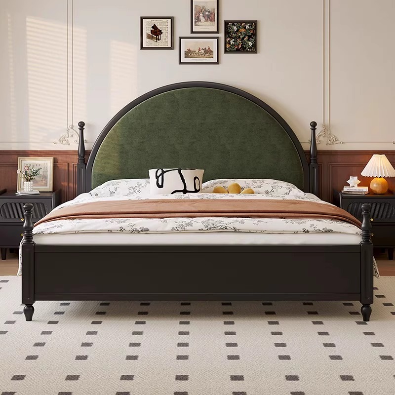 半月型ベッド フレンチスタイル無垢材ベッド 中世風アメリカンレトロ ヴィンテージ パリ風 ブラック寝室用ダブルベッド 2025ベッド ソフトパッケージ
