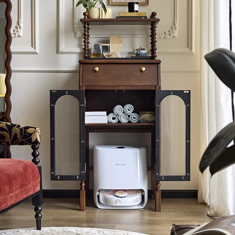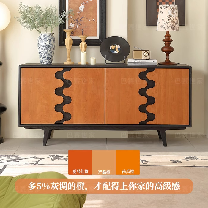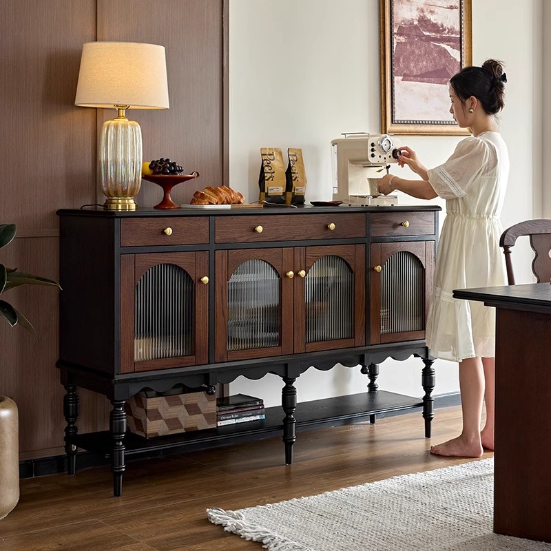 フレンチレトロサイドボード無垢材パーティションキャビネットリビングルームアメリカンエントランスロッカーストレージライト高級サイドキャビネット