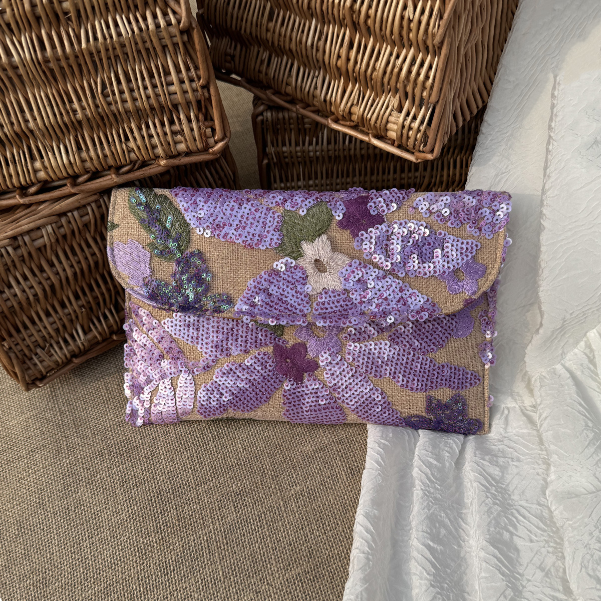 クロスボーダー高級感PVCスパンコールディナーバッグ新作花網糸刺繍カバーレターパックレディースハンドバッグ