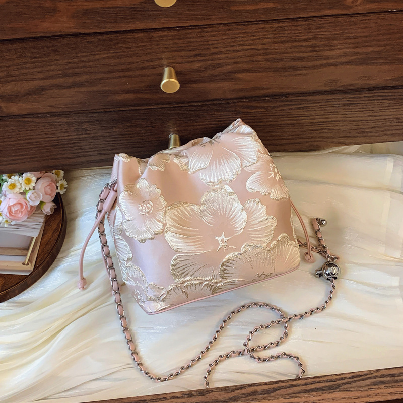 2025新型国風刺繍花チェーンバケツバッグ新中国式復古風女性バッグ