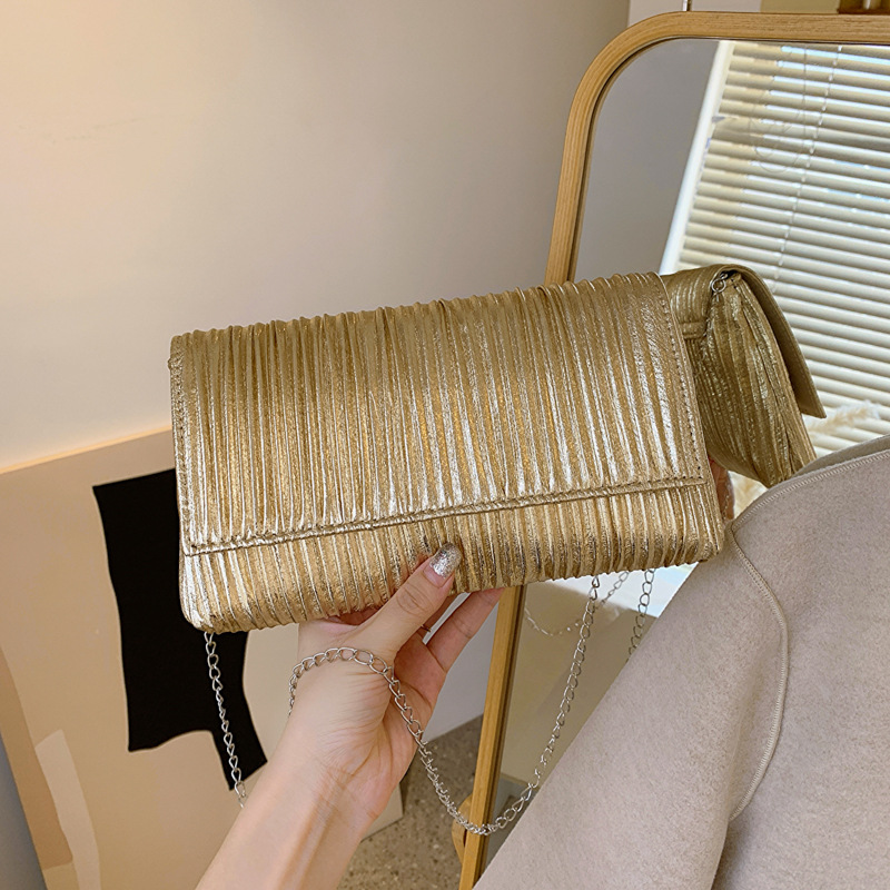 女性カバン名媛の晩餐会のカバンの新型の明るい顔のしわの小さい方のカバンの小さい大衆の設計感のチェーンのシングル肩の斜めのショルダーバッグ