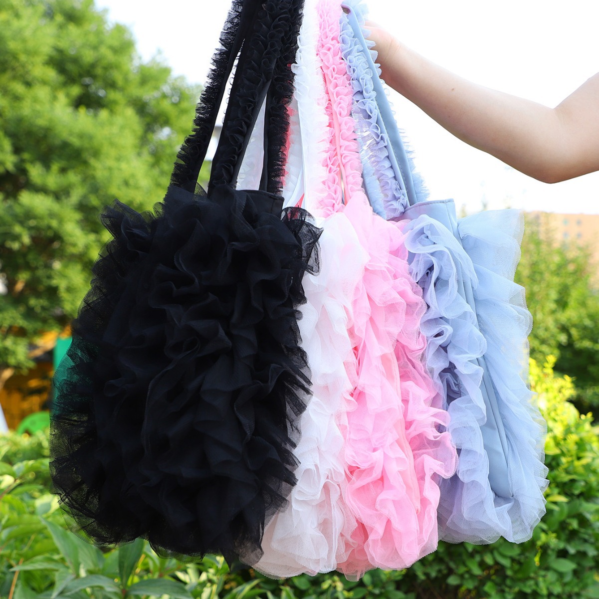 女性カバン2024夏の新型スカートは日本の小清新な甘い風レースの柔らかい糸のスカートのしわの肩を包みます。