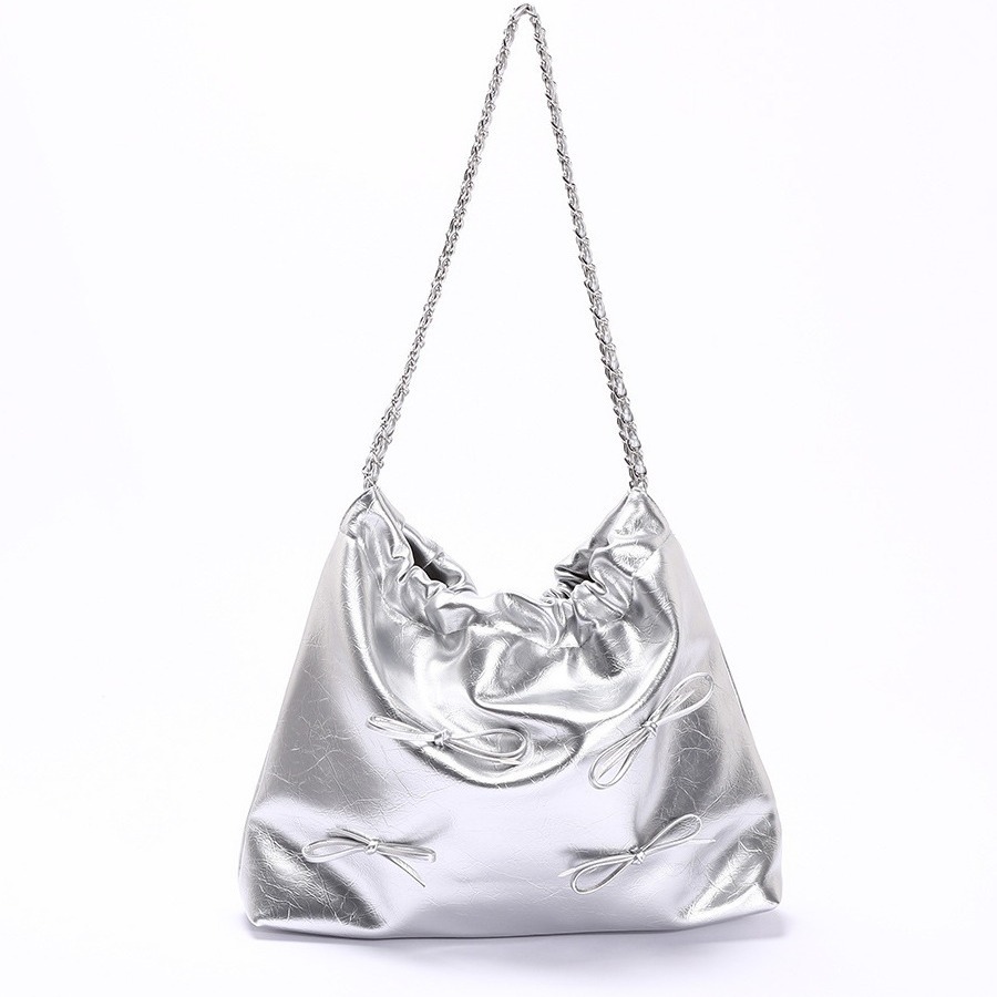 Ins超火蝶結びバッグ女性夏新作銀色チェーンバッグ小清新大容量脇下ショルダーバッグ