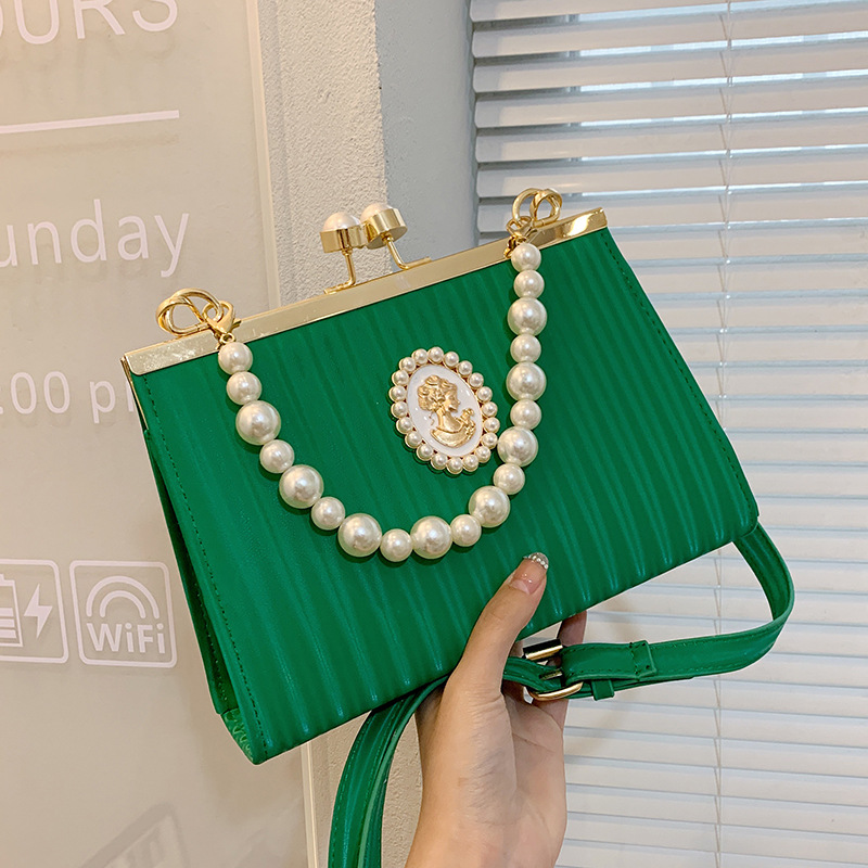 レディースバッグ新作ディナーバッグ高级感パール女王バッジ装饰クリップバッグエレガントプリンセス风ハンドバッグ