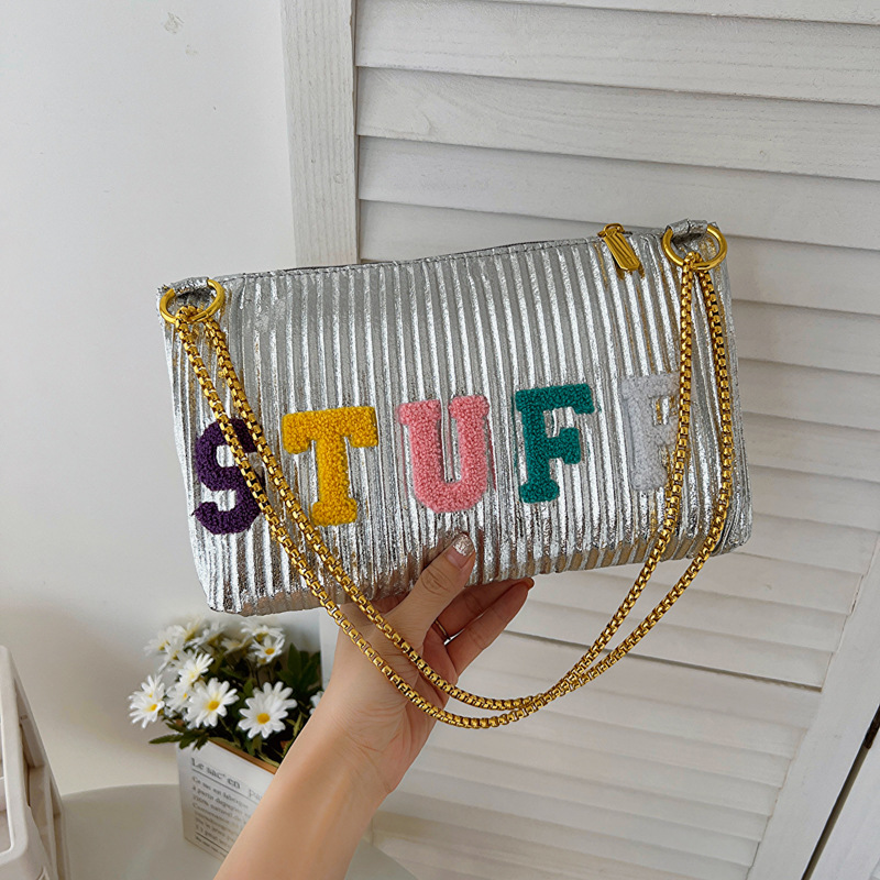 新しいバッグの女性の生放送の福祉の金は夜市を並べて縁日の贈り物のアルファベットのタオルの刺繍のチェーンのショルダーバッグを追います。