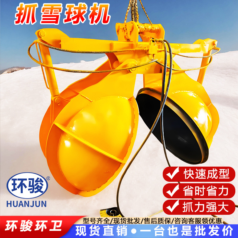 掘削機は雪玉の道路を捕まえて積雪を掃除します。