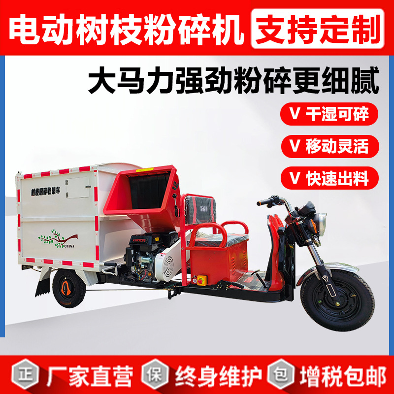 電動枝粉砕車移動園林樹木砕枝機三輪枝粉砕収集車
