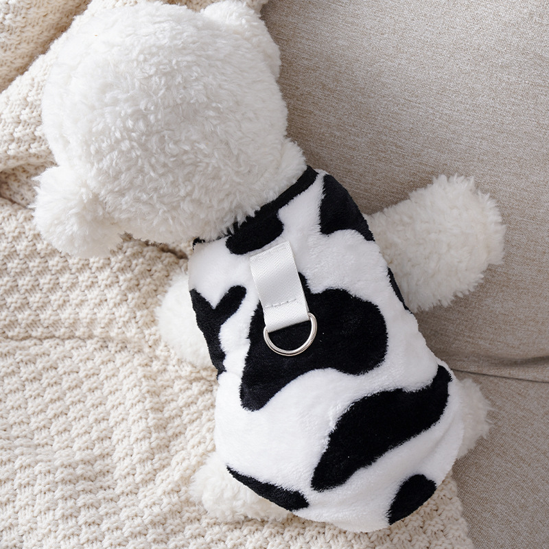 メーカー卸売り越境秋冬フランネルペット乳牛四足変身服装保温テディ犬服