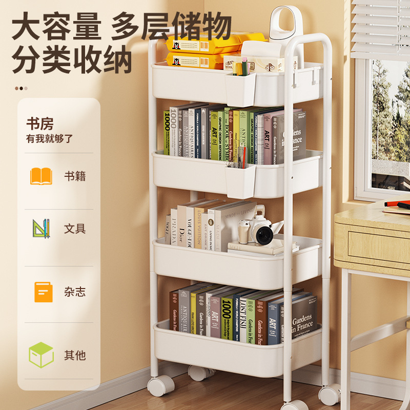 カート本棚棚テーブルの下に移動可能なプーリー収納棚多層寮本間食玩具棚