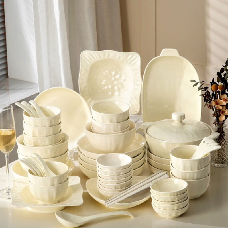 食器セット家庭用2025新型クリーム風釉薬下彩ジョー食器新婚プレゼント食器蝶食器セット