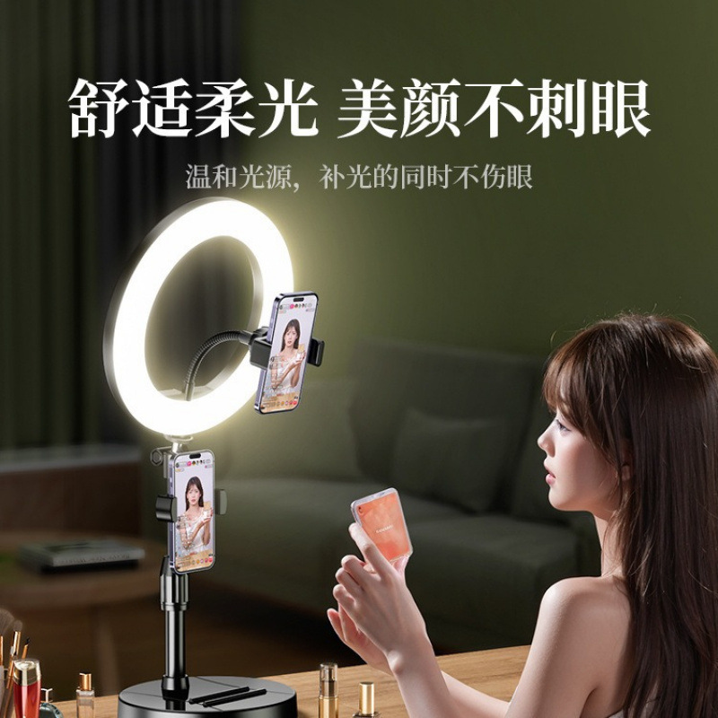 自撮り美顔デスクトップ熙琦2025新型携帯電話生中継スタンド補助ライト設備セットのディザトーン撮影サポート