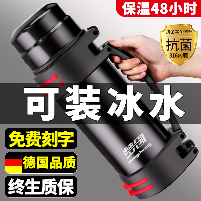 大容量保温ポット保冷ポット家庭用保温カップ男性旅行屋外携帯車載水筒2リットル印刷