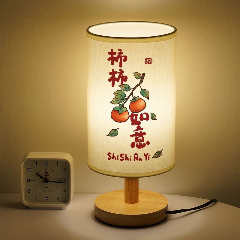 柿柿如意雰囲気感小電気スタンド創意寝室ベッドヘッドランプシンプル小夜灯中国風睡眠灯書道